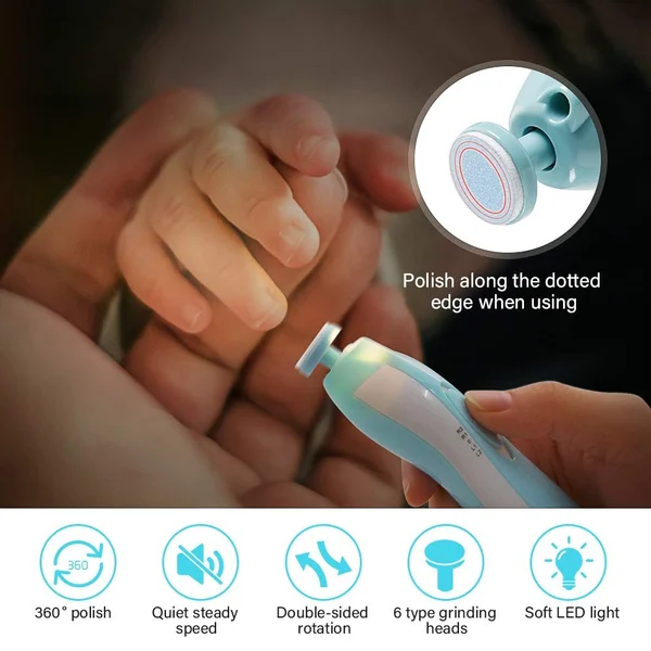 Our nail trimmer is specifically designed to safely and quickly trim and polish little toe and fingernails for both babies as well as adults. It is super soft and will not damage cuticles or nail beds.